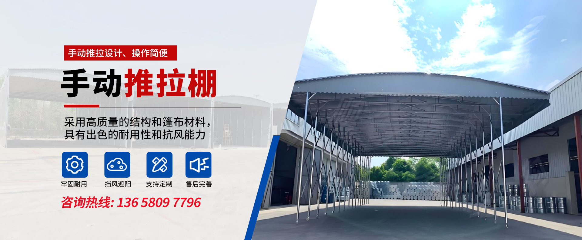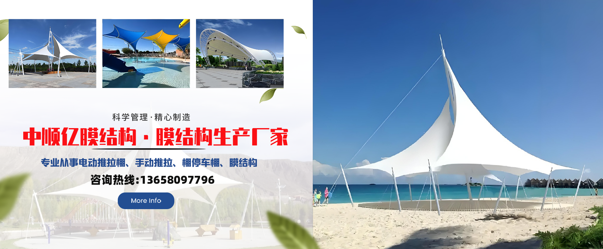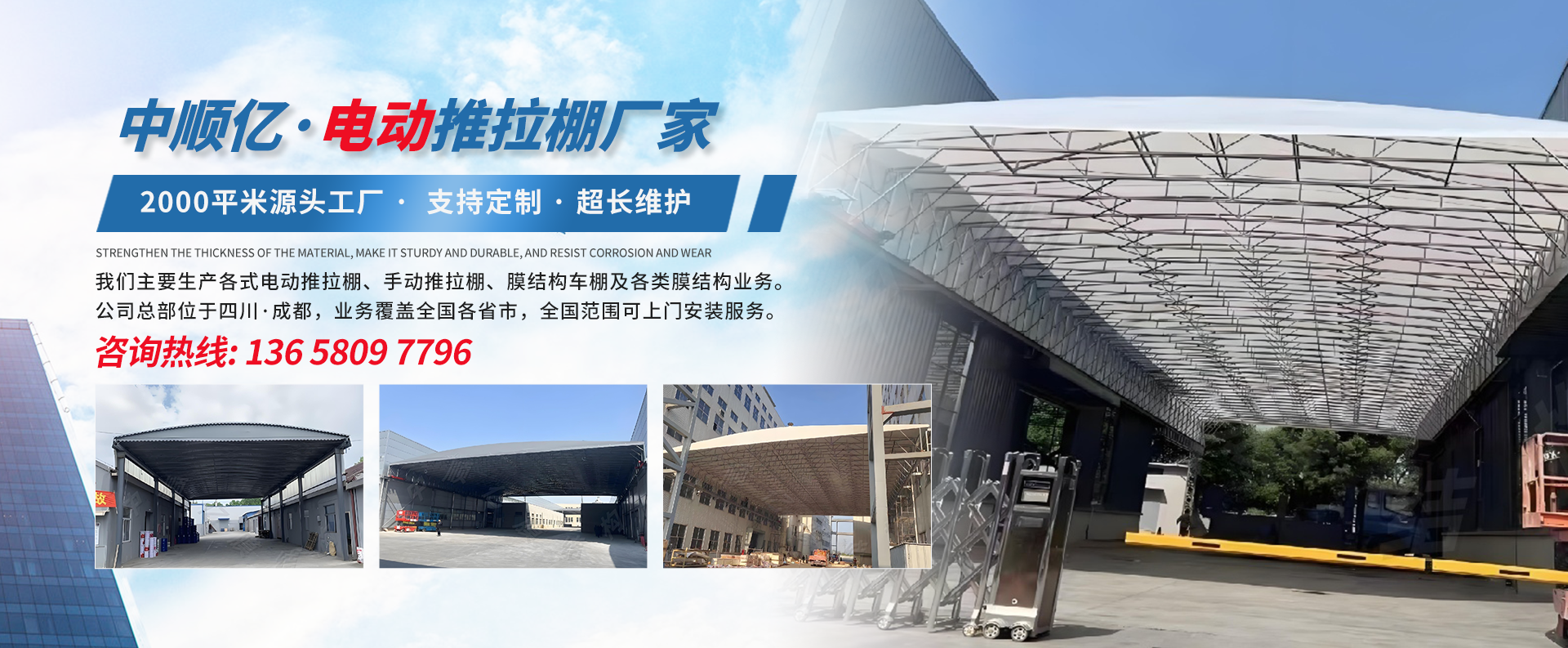 四川省中顺亿膜结构安装工程有限公司,是一家专业从事电动推拉棚、手动推拉棚、停车棚、膜结构设计、制作、安装为一体的一站式服务公司。我们主要生产各式电动推拉棚、手动推拉棚、膜结构车棚及各类膜结构业务。公司总部位于四川·成都,业务覆盖全国各省市,全国范围可上门安装服务,公司员工30余人,其中拥有高、中级专业技术人员十余人,相关资质齐备。 自公司成立以来,我们秉承“质量为本、技术创新、诚信服务、...